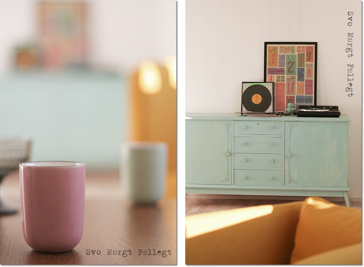 en hjá Madda mínum hér í næsta húsi er þessi fallegi skenkur sem svo sannarlega sómir sér vel svona grænblár.