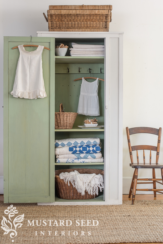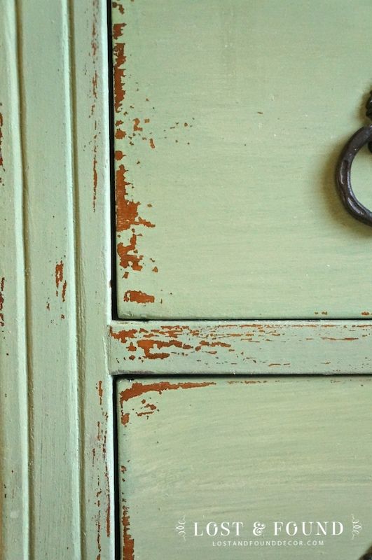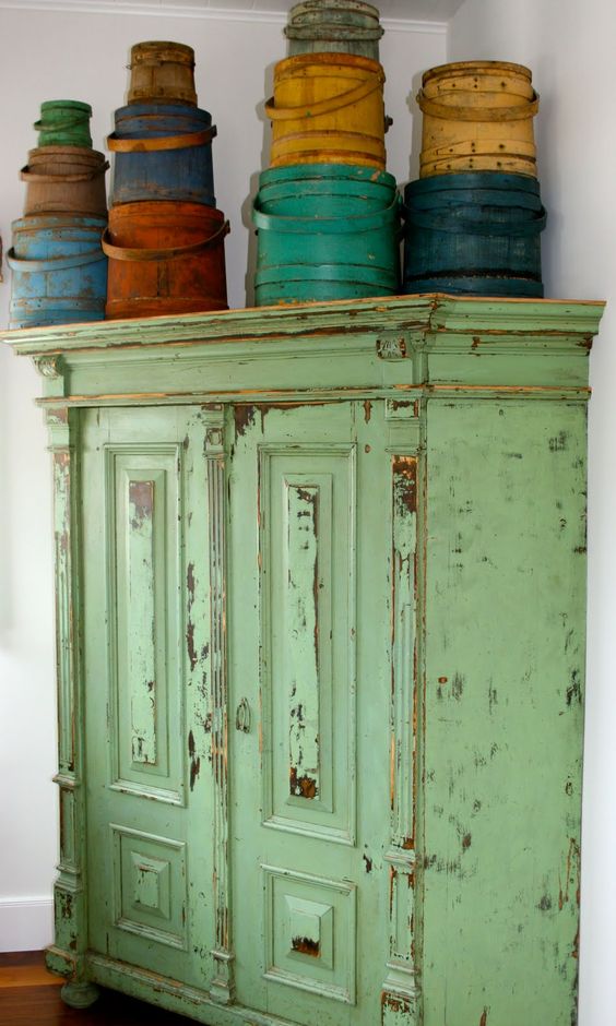 Stór og veglegur gamall skápur ber græna veðraða málningu svona líka rosalega vel.