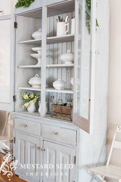 Marían málaði þennan skáp með Shutter Gray og hafði málninguna óvarða eða hráa eins og við köllum það, Þá er áferðin hrá og gróf og liturinn mun daufari og gráleitari.