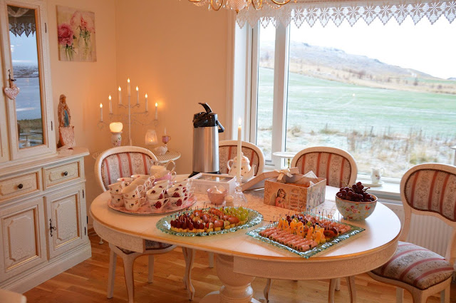 Hér er mynd sem ég fann af léttu veitingunum frá fyrri útgáfugleði blúndu og blóma.